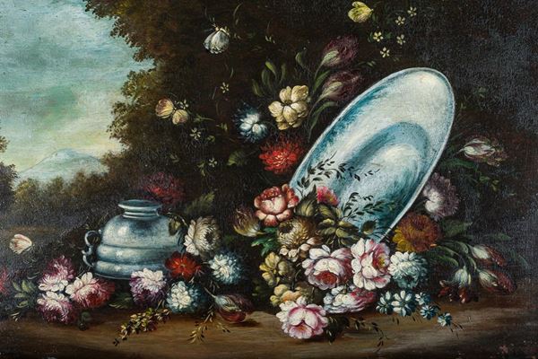 Natura morta con fiori e vasellame, seconda metà del XIX secolo