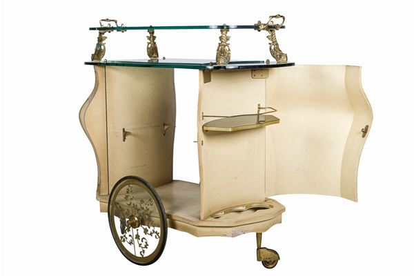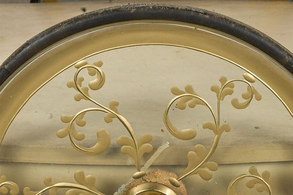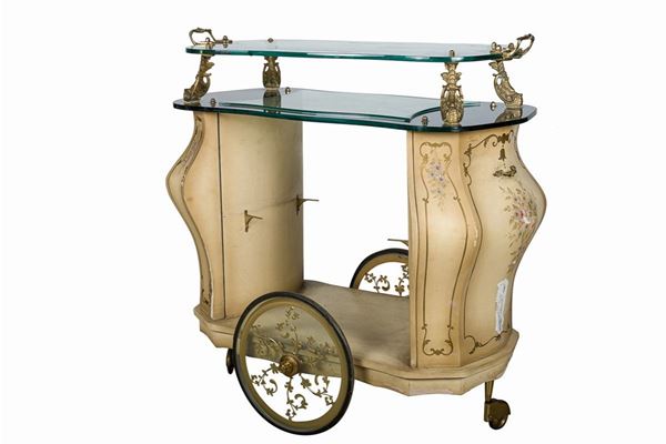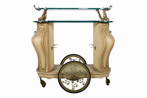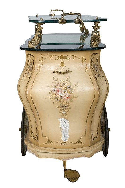 In stile settecentesco. Legno dipinto con elementi in bronzo e vetro. Mancanze e difetti.