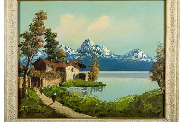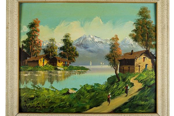 Coppia di paesaggi montani con baite, XX secolo