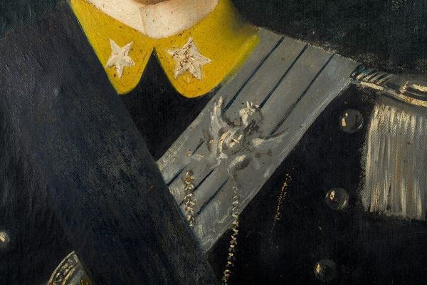 Formato ovale, in cornice. Lievi cadute e mancanze di colore.