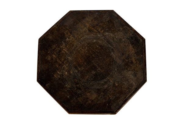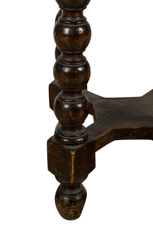 in legno tinto a noce, gambe a tortiglione, mancanze e difetti
