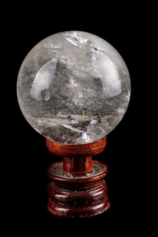 di cui: una sfera in cristallo, una sfera in quarzo ialino e una sfera in quarzo rosa. Complete di piccole basi in legno