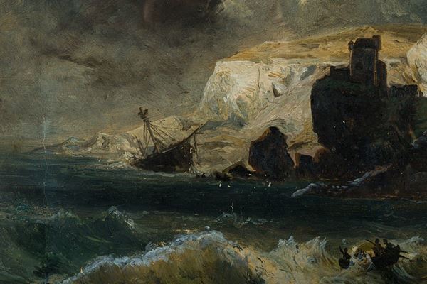 Marina in tempesta, pittore inglese, 1908
