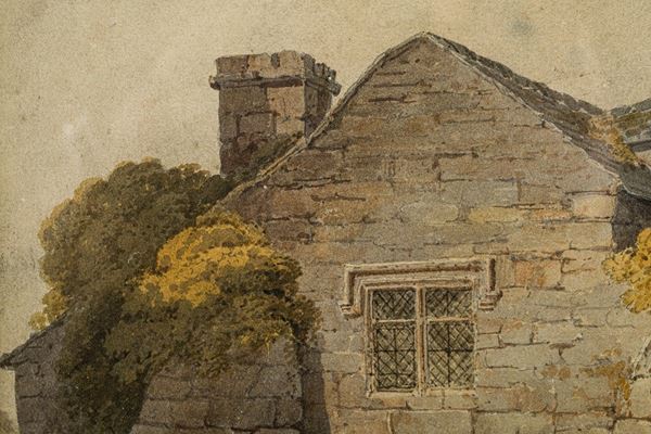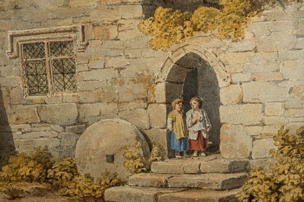 Veduta di casolare di campagna con due bambini, XIX - XX secolo