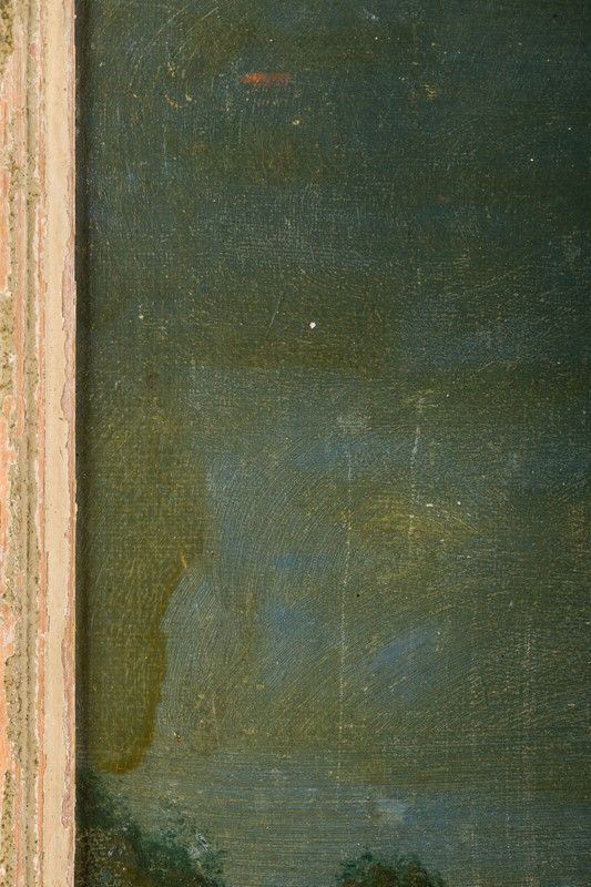 olio su tela applicata su compensato