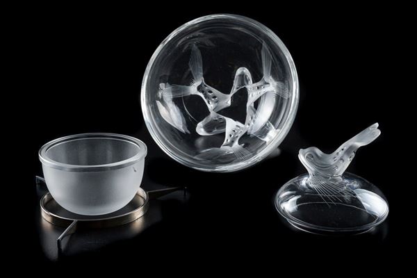 Coppa portacaviale in cristallo Lalique, XX secolo