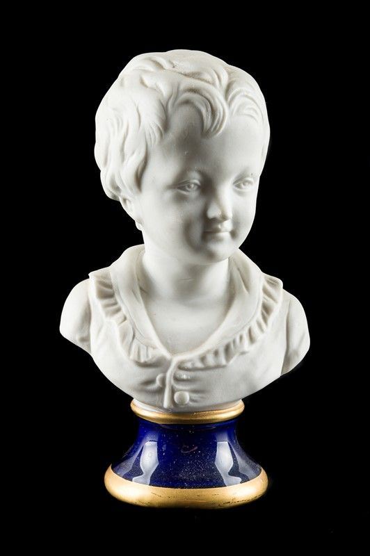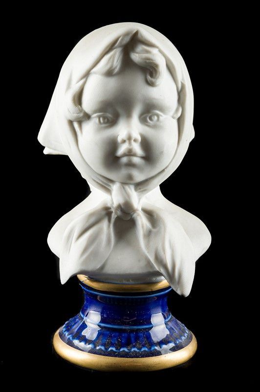in biscuit, raffiguranti fanciulli, con base in porcellana dipinta