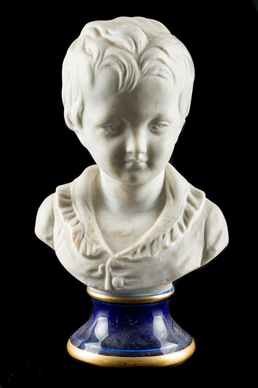 in biscuit, raffiguranti fanciulli, con base in porcellana dipinta