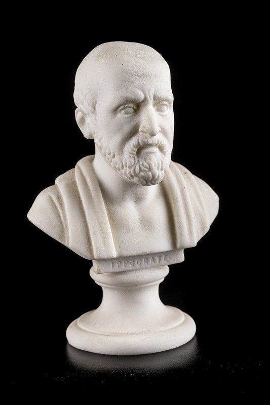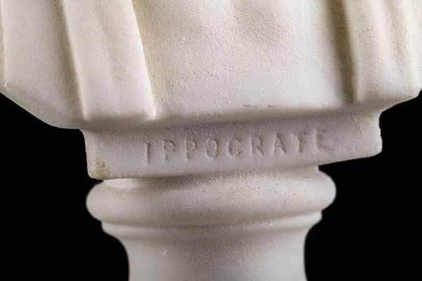 raffiguranti Ippocrate e Goethe (restauri), in materiali diversi