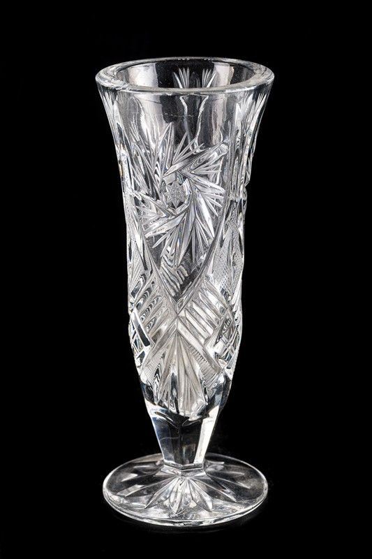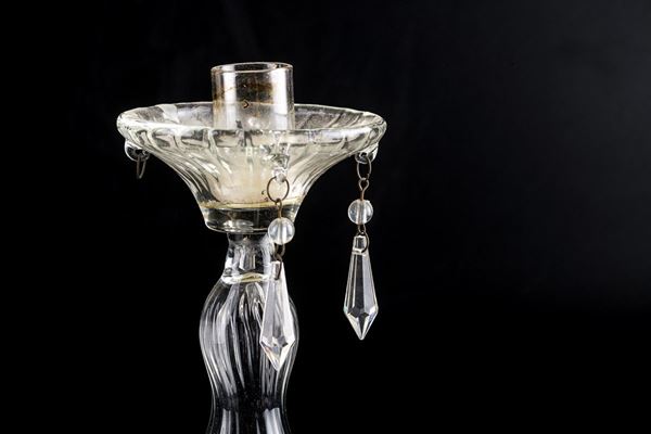 Lotto di un piccolo vaso e un portacandela in cristallo