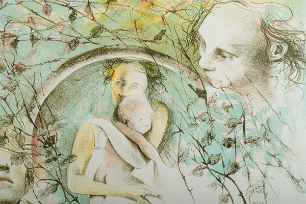 Prova d'autore. Uno tra i più importanti lavoratori nel mondo dell'arte contemporanea. Pittore, illustratore, incisore, litografo, calcografo. Fondatore della Galleria d'Arte Alzaia. Tante le mostre alle quali ha partecipato: Quadriennale di Roma, Parigi, Museo National Santiago del Cile.