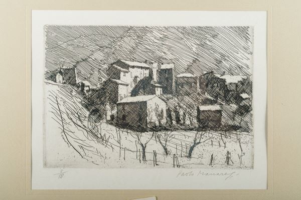 Firmata e numerata a matita dall'artista. N. 8/18. Al retro certificato di galleria Durer di Bologna. Opera pubblicata in monografia. In cornice.