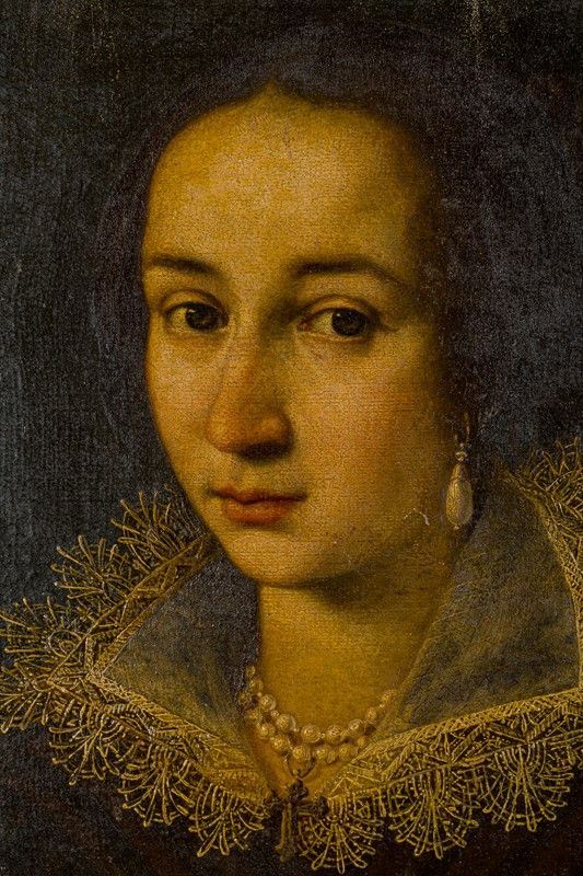 L'interessante ritratto di dama qui presentato, esemplifica i tratti salienti di quella ritrattistica di gusto internazionale e dalle forti qualità mimetiche che dal nord Europa ebbe larga diffusione nell'Italia della fine del XVI secolo. Ed ecco come la grande abilità nel ritrarre "al naturale" e la straordinaria resa materica dei decori, caratteristiche peculiari di questa tela, facciano pensare ai grandi ritrattisti attivi a Roma e a Firenze tra la fine del Cinquecento e gli inizi del Seicento e, in particolar modo, a Scipione Pulzone (1544-1598) e alla sua cerchia. Ritroviamo qui l'elegante calligrafia nel restituire la resa materica e lenticolare dei tessuti e dei merletti, la penombra diffusa, i morbidi contrasti chiaroscurali (sui riflessi dell'orecchino e della collana di perle) e l'assoluto controllo dell'espressione dell'effigiata: proprio le caratteristiche per cui Scipione fu ampliamente lodato in vita e che fecero scrivere al Borghini, nel 1584 che "...i suoi ritratti pajono vivi".