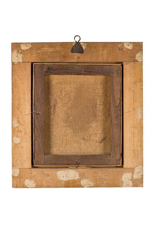 Il dipinto, reintelato, è in buono stato di conservazione. Analizzato alla lampada di Wood sono visibili ridipinture, alcune antiche altre più recenti, non interessano gli occhi né il prezioso pizzo dell'abito. In cornice.