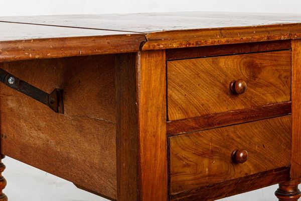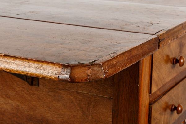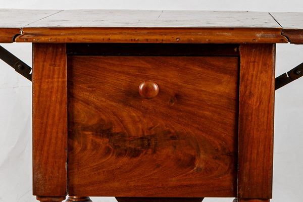 in legno di mogano. Tre cassetti laterali. Piccoli difetti.