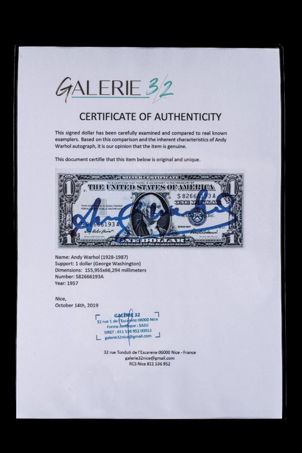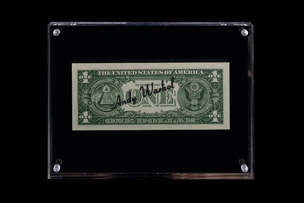 Sul fronte: firma al centro con marker blu "Andy Warhol"; al verso: timbro "Andy Warhol".