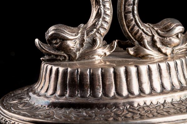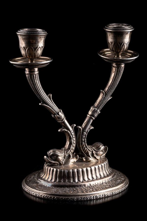 a due luci, a forma di tritone con base ovale incisa. Peso: 1096 gr