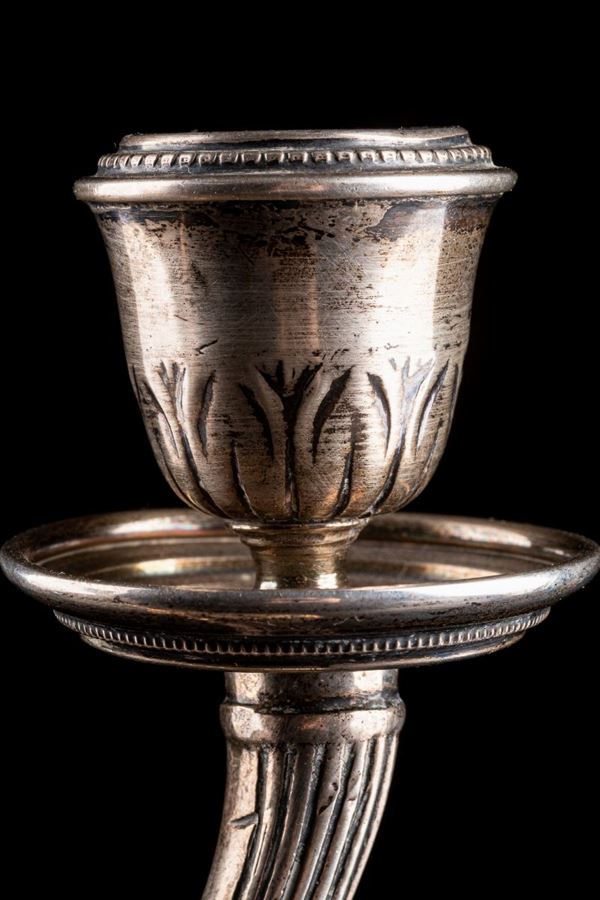 Coppia di candelieri in argento 833/1000, Egitto, prima metà XX secolo