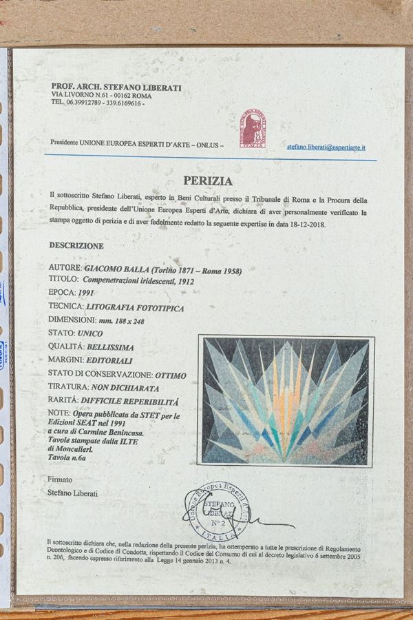 Opera pubblicata da STET per le edizioni SEAT del 1991 a cura di Carmine Benincasa. Tavole stampate dalla ILTE di Moncalieri. Tavola n.6a. In cornice, firmato. Al retro presenta la perizia firmata dal professor Stefano Liberati.