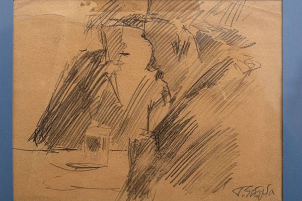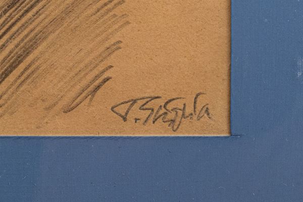 Il disegno presenta una macchia rettangolare nella zona centrale superiore. Firmato in basso a destra, in cornice.
