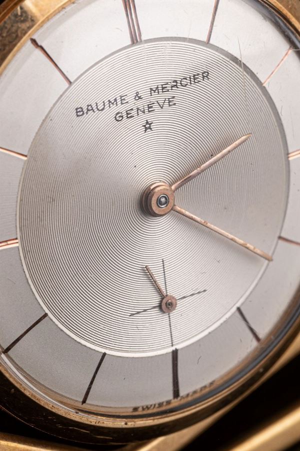 con integrato orologio Baumercier, carica manuale con cassa in oro. Peso: 33,90 gr