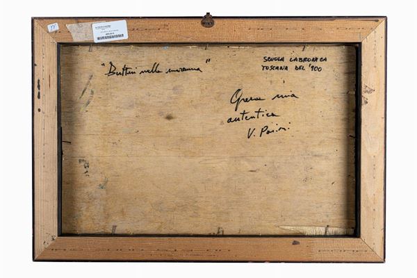 In cornice, firmato in basso a destra. L'opera presenta autentica al retro.