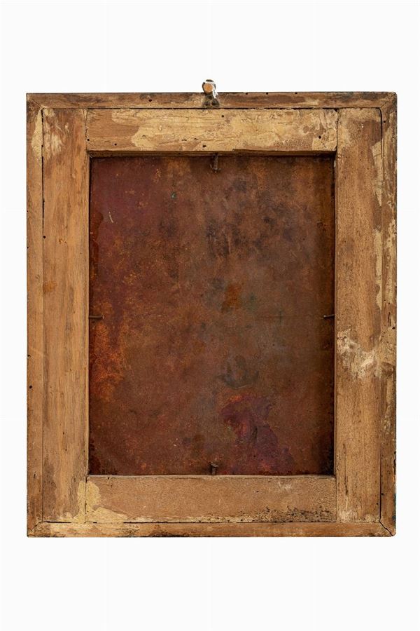 Entro cornice coeva in legno intagliato, dorato e laccato