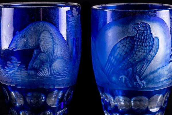 Coppia di bicchieri in cristallo di Boemia, metà XX secolo