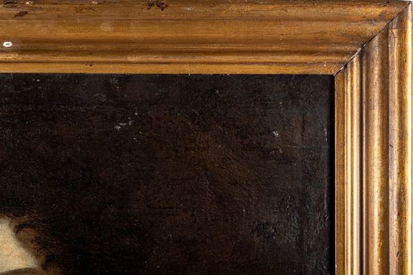 Il dipinto, anticamente reintelato, presenta riprese di colore, in particolar modo nelle parti più chiare dell'opera, e minute cadute di colore in basso a sinistra. In cornice.