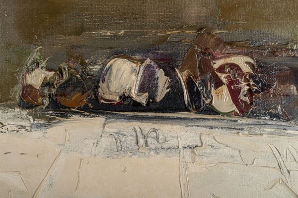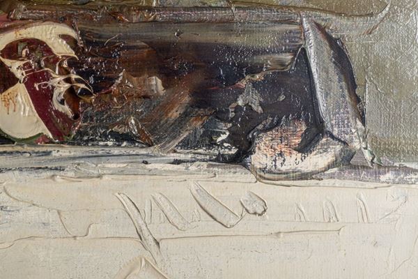 L'opera, firmata in basso al centro, è firmata, datata e titolata al verso e su telaio. In cornice.