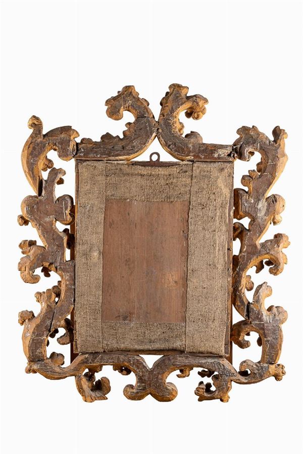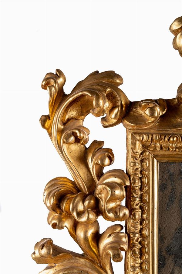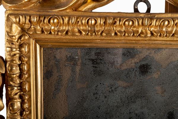 dorato e scolpito a fogliami. Specchio al mercurio. Lievi difetti.
