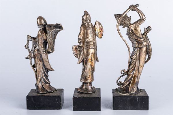 3 personaggi cinesi in argento 800, Italia, seconda metà XX secolo