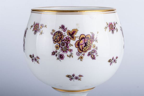 in porcellana bianca, a decoro floreale e finiture in oro zecchino, marcata sotto la base, manifattura tedesca.