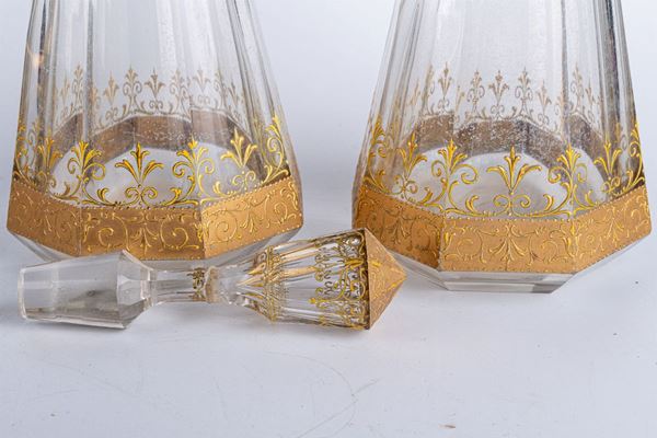 Coppia di bottiglie in cristallo, Austria, metà XX secolo
