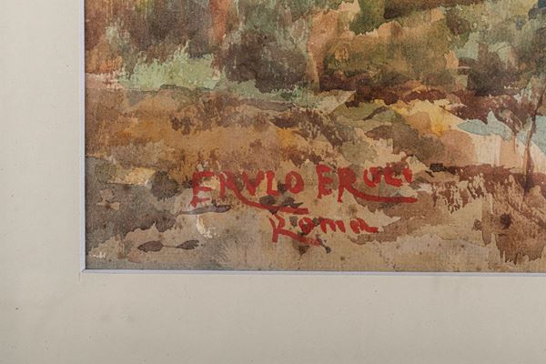 Firmato in basso a sinistra. Il foglio presenta gore di umidità in alto a destra. In cornice.