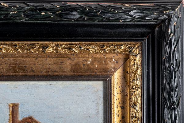 Il dipinto, firmato in basso a destra, non presenta lacune se non qualche crettatura lungo il bordo più esterno. In cornice