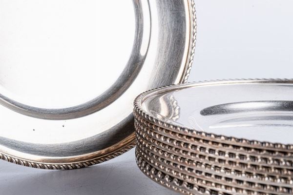 Lotto di 10 sottopiatti, Argenteria Fornari Roma, metà XX secolo