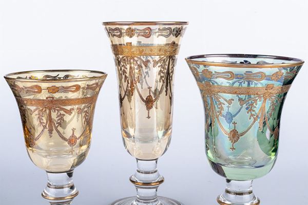 In tre misure differenti, in vetro con decoro a festoni in oro zecchino.