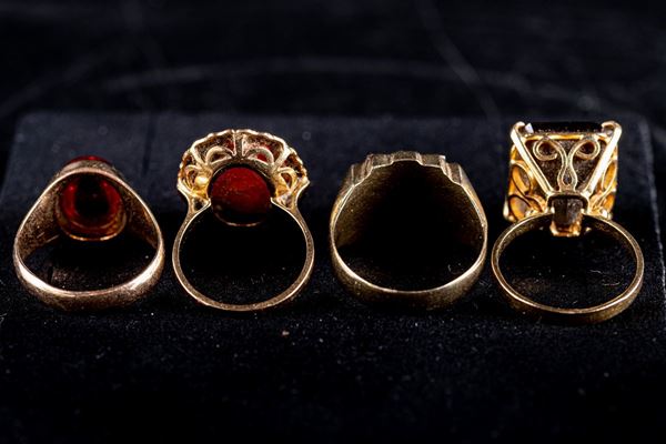 di cui 2 in oro 750 e 2 in oro basso titolo, con coralli e pietre. Peso oro basso: 11,50 gr; Peso lotto intero: 26,25 gr
