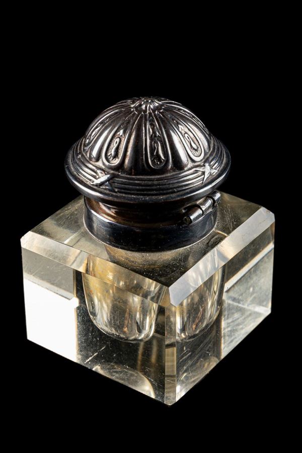 con boccia porta inchiostro in cristallo e un tampone per la carta. Peso netto: 230 gr