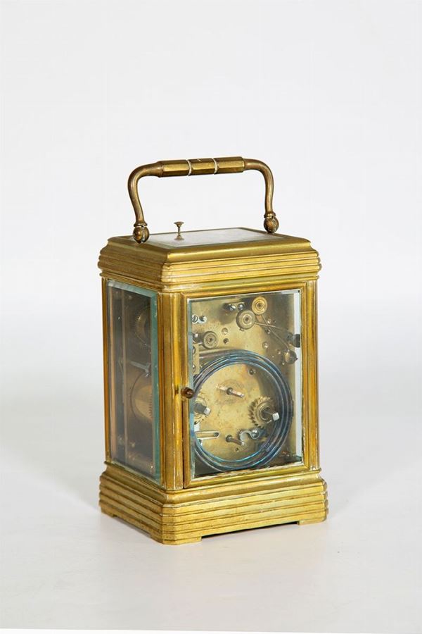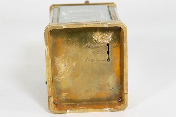 In bronzo, con quadrante a numeri romani e contasecondi a numeri arabi.