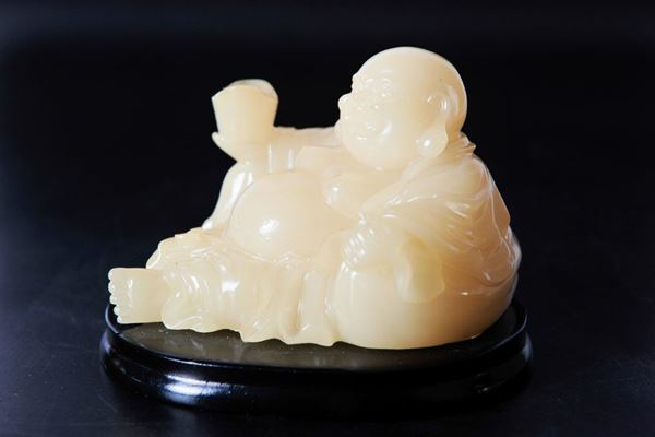 Scultura in volume in giadeite. Su basetta in legno ebanizzato.