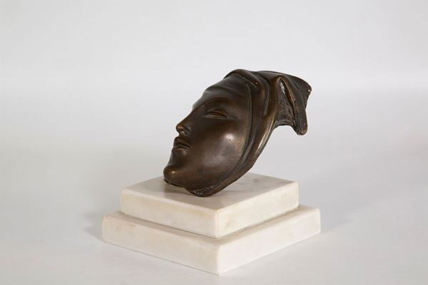 Scultura in volume in bronzo su base in marmo. Datata e firmata.