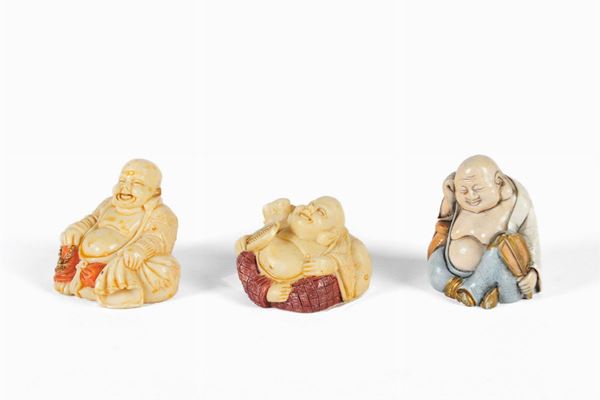 Lotto di 3 Buddha, Estremo Oriente, seconda metà XX secolo