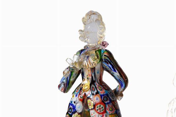 Sculture in volume in vetro policromo, con puleghe in oro. Piccole mancanze alle mani.