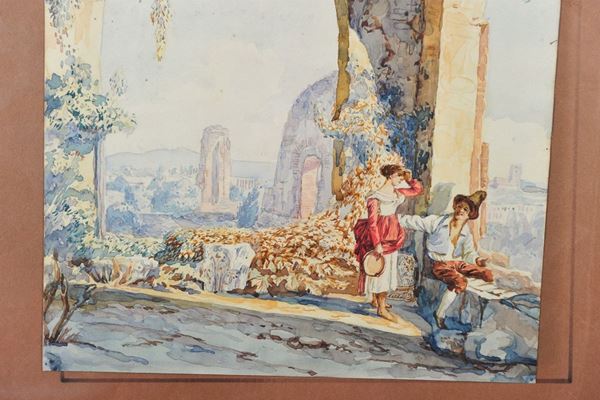 Scorcio di paese con figure, Scuola Italiana, prima metà XX secolo