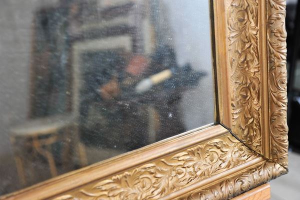 In legno e stucco a porporina, con motivi vegetali a rilievo.