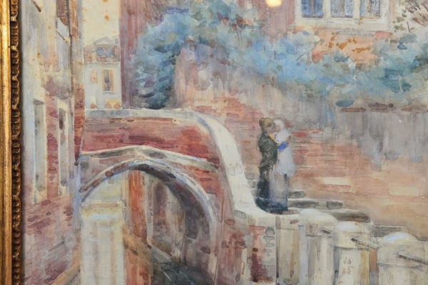Foxing sparso sulla parte superiore del dipinto, in cornice, firmato in basso a destra.