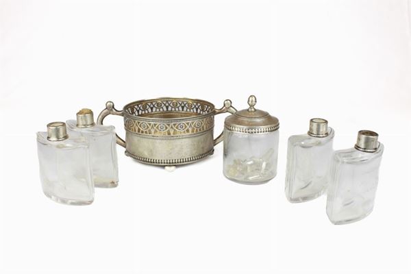 Contenitore per flaconi portaprofumo in argento 800/1000, Italia, prima metà XX secolo