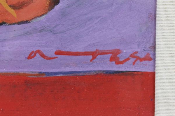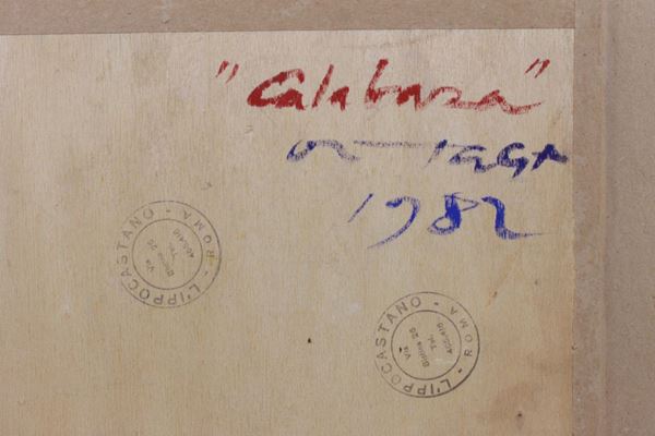 Firmato in basso a destra; Titolato firmato e datato al retro. Timbro Galleria L'ippocastano - Roma. Entro cornice.